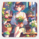 Plant lover stickers. Sweet anime girl sitting on her front steps on a summer day holding a plant. Cute stickers for anyone who loves plants and anime.