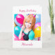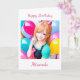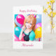 Pink and teal Anime girl with balloons personalised Birthday card. Ai generated artwork. Cute card for a pre teen or teenage girl who likes anime. generativecontent Inside is a surprise colouring page.