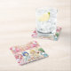 Pretty pink and green anime girl's birthday ice cream party personalized paper coasters! Adorable girls sitting around a table eating ice and pretty pastel colors.