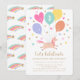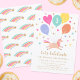 Celebrate a magical birthday with these cute and colourful party invitations! A simple illustration of a little unicorn surrounded by balloons, hearts and stars. It features the birthday age and trendy script lettering with the words "Let's Celebrate". All the text can be customised, so you can include the information you want. On the back, a pattern with rainbow shooting stars continues the magical theme. This personalised card is perfect for young kids' milestone birthdays. A stylish template with a pastel colour palette of peach, pink, yellow, blue-green, lavender-blue and gold.