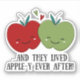 Make a delicious 'International Eat an Apple Day' with unique Apple art printed on Sticker. This sticker has cute 2 apples and '...and they lived apple-y (happily) ever after' quote design. You can buy this sticker in 6 different sizes with glossy and matte finished.