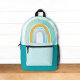 This cute kids backpack design features an illustration of an aqua, blue, and faux gold glitter rainbow. On the top you can customise it with your child's name. If you prefer not to include a name, then simply delete that text. It's a sweet modern design for young kids!