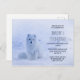 Birthday party invitation postcard with a photograph of a white arctic fox. A wintery snowy landscape surrounds this delightful creature.
