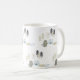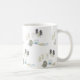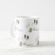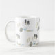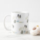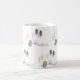 This cute coffee mug features a North Pole theme. Cute arctic animals are pictured around an igloo in the chilling winter cold. A polar bear is pictured at the top, surrounded by pine trees. A walrus is sitting in front of the igloo, and a baby seal is perched at the edge of the sea. The image is tiled across the mug.