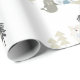 This cute Christmas wrapping paper features a North Pole theme. Cute arctic animals are pictured around an igloo in the chilling winter cold. A polar bear is pictured at the top, surrounded by pine trees. A walrus is sitting in front of the igloo, and a baby seal is perched at the edge of the sea.
