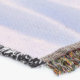 A quality printed throw has its advantages. This is a much finer weave throw than its loopier cousins, and though lighter, it is worth the investment for custom room accessorizing. The back is much prettier than the typical brown, and the fringe on the long sides very vivid, the selvage nicely done. Before photographing, I washed the throw in cold water, delicate, with a thicker woven throw the same size. On tumble dry low, this throw was dry in half the time as the other. This is a very practical quality if you use throws for furniture covers or to wrap up in frequently. The sleekness of the fabric makes it a great layer for accenting or protecting without the feeling of sitting on too much stuff. Perfect for napping or when you feel a light chill coming on. The color printing is beautiful and on this fabric, matched the design and color of my Photoshop image. This is an advantage for blending room fabrics and colors. The fringe on the short sides prints the colors from the design image and therefore varies from the side fringe. I streaked a white fractal line through the plaid pattern to give the illusion of weaving. This printed as crisp as an illusory thread, and put some white in the short side fringe, showing another advantage of print vs loomed- for artistic purposes, line lines, detail, and color integrity can be planned and preserved. My loomed throws have color limitations and more of a needlepoint texture. Print throws reproduce an exact image. The throw felt a little stiff straight out of the package, but this went away in the first delicate wash. Of course I searched the wash water for ink or bleeding and there was none.