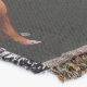 A quality printed throw has its advantages. This is a much finer weave throw than its loopier cousins, and though lighter, it is worth the investment for custom room accessorizing. The back is much prettier than the typical brown, and the fringe on the long sides very vivid, the selvage nicely done. Before photographing, I washed the throw in cold water, delicate, with a thicker woven throw the same size. On tumble dry low, this throw was dry in half the time as the other. This is a very practical quality if you use throws for furniture covers or to wrap up in frequently. The sleekness of the fabric makes it a great layer for accenting or protecting without the feeling of sitting on too much stuff. Perfect for napping or when you feel a light chill coming on. The color printing is beautiful and on this fabric, matched the design and color of my Photoshop image. This is an advantage for blending room fabrics and colors. The fringe on the short sides prints the colors from the design image and therefore varies from the side fringe. I streaked a white fractal line through the plaid pattern to give the illusion of weaving. This printed as crisp as an illusory thread, and put some white in the short side fringe, showing another advantage of print vs loomed- for artistic purposes, line lines, detail, and color integrity can be planned and preserved. My loomed throws have color limitations and more of a needlepoint texture. Print throws reproduce an exact image. The throw felt a little stiff straight out of the package, but this went away in the first delicate wash. Of course I searched the wash water for ink or bleeding and there was none.