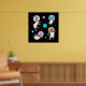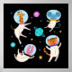 A poster with an image of astronaut animals in see-through helmets floating in space. Giraffe, mouse, cat & rabbit. So adorable and fun.
