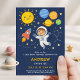 Make your child’s celebration truly magical with this charming space-themed birthday card. A cheerful little astronaut floats among smiling planets, bright stars, and a playful rocket, creating a warm and joyful cosmic atmosphere. Soft textures and cute illustrations give the design a friendly, imaginative feel that young space lovers will adore. Perfect for setting an adventurous tone and adding extra excitement to any child’s special day.
