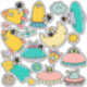 Fun cartoon astronaut, rockets, planets and UFO space stickers.