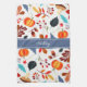 Cute Autumn Leaves Pumpkin Pattern & Your Name Tea Towel