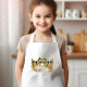 This kids' apron for animal lovers features a trio of cute owl illustrations above a banner decorated with fall foliage. Personalise it with your child's name in black letters in hand-printing style font.