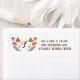 A charming, autumn wreath of brown and little, red capped mushrooms and colourful leaves. They border a customisable, monogram initial, left and right. So add your name and address, plus initial before purchase.