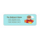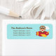 A colourful and cheerful address label design which features a cute boy in aviator outfit of big goggles and hat. He is waving his hand happily as he flies a little red and yellow aeroplane among the clouds. For kids who love aeroplanes and aviation related things. Personalise with address.