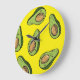 Add a fresh and fun touch to your walls with this adorable avocado print wall clock. Featuring a vibrant and whimsical pattern of sliced avocados on a cheerful yellow background, this decorative timepiece is the perfect blend of modern art and playful functionality. Designed for foodies, health enthusiasts, and lovers of 'kawaii' aesthetics, it makes a stunning focal point in any sunny kitchen, breakfast nook, or children's nursery. Crafted with high-quality printing, this unique clock not only keeps you on schedule but also brings a pop of color and personality to your home. It's a fantastic housewarming gift for vegan friends or a delightful surprise for anyone who loves avocado-themed decor.