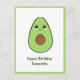 A postcard with cute avocado in cartoon style and a customisable text: a nice gift to send for a birthday to a vegan, a lover of Kawaii characters or a girlfriend!