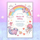 Make your little one’s day magical with this cute axolotl rainbow birthday invitation! Featuring playful axolotls, rainbows, hearts, and jellyfish, this adorable design is perfect for an under-the-sea party or any whimsical kids’ birthday. Perfect for ocean lovers, aquatic parties, and axolotl fans!