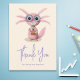 Cute axolotl teacher appreciation thank you card. The unique illustration as an axolotl with glasses and retainer holding a pile of books and an apple. Personalise the message at the back of the card and make it truly one of a kind. The glitter is simulated and it's a print. Illustrated and designed by Patricia Alvarez.