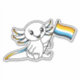 This endearing axolotl proudly waves its AroAce (aromantic and asexual combined) Pride flag. Also called the "sunset flag," its orange, yellow, white, light blue, and deep blue colours represent the unique variety of the aspec identity, including love, wholeness, relationships, and community. Let this sweet little critter's big eyes and contagious smile cheer you on as you proudly celebrate your authentic self at Pride and all year long!