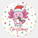 Cute Axolotl with Santa Hat Kawaii Style Classic Round Sticker