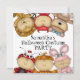 The perfect invitations for a kids Halloween costume party featuring cartoon illustrations of babies dressed in costume at the bottom and hanging from the top of the invitation. The costumes include a ladybug, pumpkin kid, bunny rabbit, lion, devil and bear. The text on the front and back of the invitation is fully customisable for your own Halloween party. The back also features the cute Halloween characters in a row at the bottom. This invitation could also be customised for a Halloween Birthday Party or for any fancy dress party. If you need assistance with customisation, please contact us through the GiftsBonanza store. Invitations created with graphics purchased for commercial use from www.realdealclipart.com sgb01