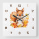 Cute Baby Animal Squirrel Autumn Leaves Square Wall Clock