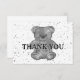 Cute baby bear watercolor. White background with grey paint splatter. Custom thank you cards. Gift idea for bear lovers of all ages.