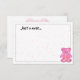 Cute pink baby bear watercolor. White background with pink paint splatter. Custom blank note cards.