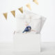 Cute baby shower features illustration of little blue jay on a tree branch. Personalised with your own text. Use Edit Design feature to change font size, style or colour. Check out the whole collection for invitations, matching favour bags, stickers, thank you cards, banner and more…