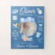 Cute Baby Boy Birth Stats Blue Newborn Modern Jigsaw Puzzle
