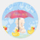 Cute Baby Boy Ducky and Umbrella Round Baby Shower Classic Round Sticker