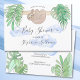 The reverse side is decorated with tropical foliage, a blue cloud and space for more information.