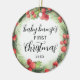 This cute "Baby Bump's First Christmas" ornament is an adorable way to celebrate your coming baby. Features a watercolor holiday wreath with red berries and modern calligraphy. Personalise with year. Design is the same on front and back of ornament. Makes a great Christmas present!