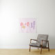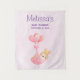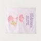 Baby shower tapestry with an adorable illustration. A little baby bunny wearing a tiny golden crown. Carried by balloons in a pink heart blanket.