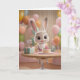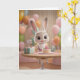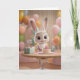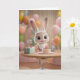 Cute Baby Bunny w/ Cake and Balloons 1st Birthday Card