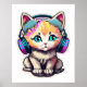 Cute Baby Cat with Headphones Poster