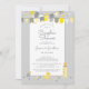 Trendy gender-neutral yellow & grey couples baby shower celebration design features trendy calligraphy and script in grey arranged in a fun border surrounded with coordinating flag banners and confetti. At the bottom of the design, you'll find more confetti along with a baby bottle, rubber duck, pacifier, and diaper pins. For best results follow template instructions and spacing when entering your details. The back of the card is an ultimate grey polka dot pattern on an illuminating yellow background and matches one of the flags in the banner. E-mail invitationsuites@gmail.com with questions or custom requests.