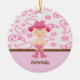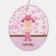 This is an adorable keepsake. It's an ornament with a white and pink western print on the top and the bottom is light pink with a brown strip along it. In the middle is a baby cowgirl wearing pink cowboy boots, a pink diaper and cowgirl hat. Check out the many other colours and designs we have. ©babystar