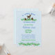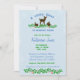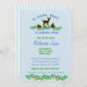Modern baby deer baby shower invitation with an adorable little brown deer, squirrel and rabbit. Perfect for that cute baby boy arriving soon. Design has flowers and green leaves and a blue stripe background' Add your party details using our easy template.