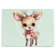 Gift bag with an illustration of an adorable baby deer. Big eyes big ears with a large head and little brown antlers. Wearing a big red bow.