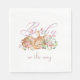 These sweet and charming baby shower napkins feature an illustrated forest theme with a sleeping baby deer and beautiful shades of pink and blush. The deer is resting in a little woodland garden of pink flowers and mushrooms.
