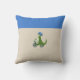 A whimsical, magical coloured pencil illustration of a baby dinosaur riding a scooter decorates this personalised boy baby, birth stats nursery throw pillow that you can customise with the baby's name and birth stats. Baby blue and forest green.