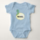Adorable baby Brachiosaurus Dinosaur just born. Cute drawing shows him popping his head out of an egg. The child's name is written in black dinosaur type text that can be changed to suit a custom name for a child. Available in newborn up to 24 months. Other colours to choose from! This one shows the "boy" blue colour, but it is also available in pink.