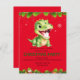 Cute baby Dinosaur holding snowman Christmas party Holiday Card
