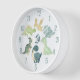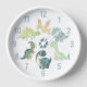 Add this adorable clock to your child's room or nursery. It features precious watercolor baby dinosaurs anxiously awaiting their new friend to "hatch". A simple, beautiful watercolor combination of green, blue, orange, red, and yellow.