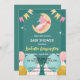 Cute baby dragon dinosaur balloon girl baby shower invitation