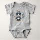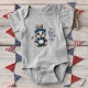 Celebrate your little one’s patriotic debut with this adorable grey baby bodysuit featuring a charming children’s book-style illustration of a baby eagle! Dressed for the occasion in a red, white, and blue top hat, the sweet eagle proudly waves an American flag, capturing the joy and spirit of Independence Day.