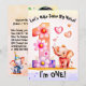 Flip to the back and you’ll find a delightful space to add your baby’s photo inside a festive balloon illustration, along with a party-hat-wearing elephant that adds an extra dose of cuteness. Personalise the card with all your event details to make it truly your own.