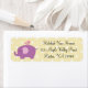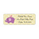 This design features a cute purple elephant with a pink bird perched on top. The background is a polka dot pattern in a light yellow/cream and white. Personalise this design with your information. This label goes with the baby shower invitation I designed. A matching postage stamp is also available.