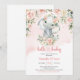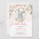 Cute baby elephant blush pink flowers gold girl invitation